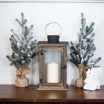 Stonebriar SB-5174B Rustic 12.5" Wooden Candle Lantern, Large, Brown