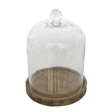 Stonebriar Small Stonebriar 8 Inch Clear Glass Dome Cloche with Rustic Wooden Base, Brown