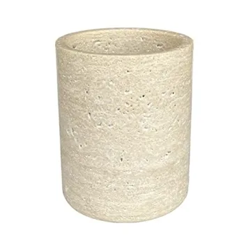 StonePlus Handmand Natural Marble with Holes Stone Vintage Kitchen Utensil Holder - 5.1" D X 6.3" H Kitchen Counter Organizers and Storage Tool Crock (Beige Stone)