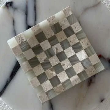 StonePlus Marble Stone Green Onyx with Travertine Checkerboard Square Small Splicing Mosaic Tray Jewelry Dish (Green and Beige)
