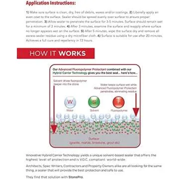 Whether you're sealing a bustling kitchen countertop or a beautiful outdoor patio, this granite sealer excels in all scenarios, giving you peace of mind against spills and stains. Enjoy the elegance of your stone surfaces for years to come with this reliable protection. Easily maintainable and long-lasting, it makes the process of looking after your stones both manageable and enjoyable.