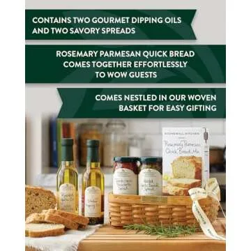 Show moreIntroducing the exquisite Stonewall Kitchen Antipasto Gift Basket—a culinary delight that brings gourmet flavors straight to your loved ones' table. This carefully curated basket includes a selection of five artisanal items, beautifully packaged and ready to impress. Within this collection, you’ll find the Tomato Herb Bruschetta Spread (8 oz), ideal for slathering on toasted bread, and the Roasted Garlic Bread Spread (8 oz) that adds a rich depth to any meal. Add a touch of Mediterranean flair with the Italian Dipping Oil (8 oz) and the Roasted Garlic Oil (8 oz), both perfect for enhancing flavors or drizzling over salads. Finally, enjoy the convenience of the Rosemary Parmesan Quick Bread Mix (18 oz), crafted for easy baking that brings the aroma of freshly baked bread to your home.