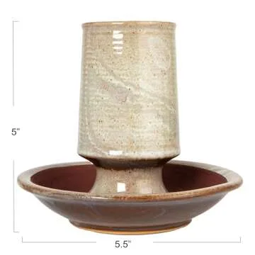 Stoneware Match Holder with Striker Plate, Reactive Glaze, Grey (Each One Will Vary)