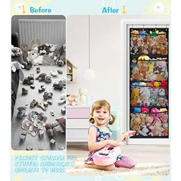 Storage for Stuffed Animals, Over Door Organizer for Stuffies, Kid's Toys, and Baby Accessories, Stuffed Animal Holder with 4 Breathable Pcoket and 8 Door Hook