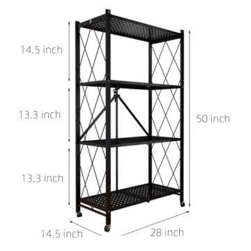 Storage Shelves, Closet Organizers and Storage 4-Shelf Foldable Metal Shelving Units 28" W x 14" D x 50" H for Garage Kitchen Bakers, Collapsible Organizer Rack, Heavy Duty on Wheels (4 -Shelf)
