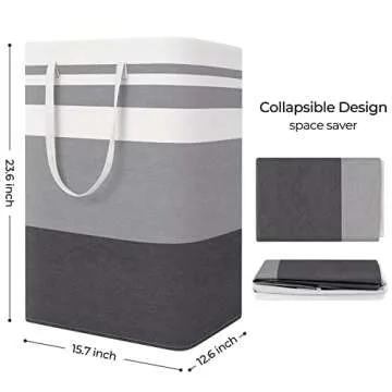 Show moreIntroducing the StorageRight Large Collapsible Laundry Basket Hamper, the perfect blend of functionality and style designed to simplify your laundry experience. This versatile hamper not only folds flat for easy storage when not in use, but it also boasts an impressive capacity of 75 liters, making it ideal for families of any size. Measuring 15.7in x 12.6in x 23.6in, it effortlessly accommodates clothes, towels, socks, and even toys. The gradient grey design adds a contemporary touch to your home decor, making it suitable for any room from the laundry room to the nursery and beyond. Every detail is considered to keep your space clean and tidy, allowing you to focus on what truly matters.