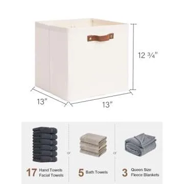 Show moreIntroducing the stunningly designed StorageWorks Collapsible Storage Cubes in a convenient 4-pack, perfect for anyone looking to maximize their home organization without compromising on style. With measurements of 13 x 13 x 12.75 inches (33*33*32.5cm), these multifunctional bins fit effortlessly within cube shelves, closets, or any other space that requires functional organization without clutter. Made from premium-quality fabric, the elegant beige color of these storage bins enhances any decor, transforming ordinary storage into a fashionable statement.