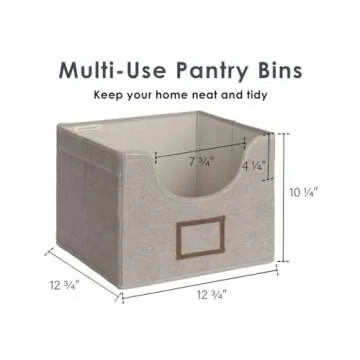 Show more Introducing the StorageWorks Closet Storage Bins, your ultimate solution to decluttering and organizing your home! These sturdy and stylish fabric storage baskets are designed to meet all your organization needs while enhancing the aesthetics of your living space. Measuring 12.75 inches L x 12.75 inches W x 10.25 inches H, this convenient 4-pack features a unique curved open front for easy access and a built-in label holder, making it easy to find your essentials at a glance. Each bin is crafted from premium quality fabric with reinforced inserts for impressive durability, ensuring they can handle a wide range of items from clothes to toys. With their sleek brown design, these bins not only offer function but also bring a touch of elegance to any room.