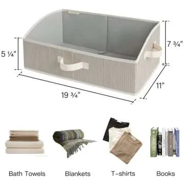 Jumbo storage bins for organization of clothes, towels, toys, magazines, blankets, office & craft supplies, etc.; Organization bins suitable for closets, shelves, and wardrobes.