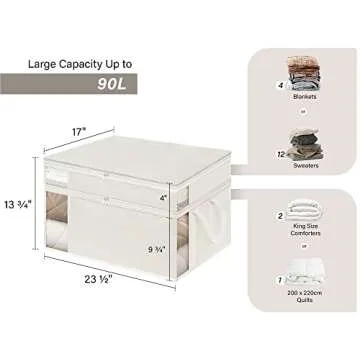 Show more Introducing the StorageWorks Double Layer Large Storage Bags – the ultimate solution for organizing your precious belongings while ensuring they remain protected from the elements. Crafted with premium polyester and cotton fabrics, these storage bags are not just sturdy but also extend the product's lifespan, setting them apart from typical non-woven fabric bags that tear easily. With a unique two-tier design, these bags boast a robust 45L and a generous 90L capacity, making them perfect for all your storage needs, from bed linens to seasonal clothing.