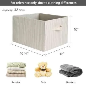 StorageWorks Large Closet Organizers with Handles, Rectangular Storage Baskets for Shelves, Foldable Closet Storage Bins for Linen Closet, 3-Pack, Beige Stripes