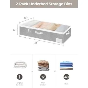 StorageWorks Large Under Bed Storage Containers with Handles and Label Holder, 2 Pack Ultra-thick Fabric Underbed Bins, Closet Organizer for Clothes, Blankets, Sweater
