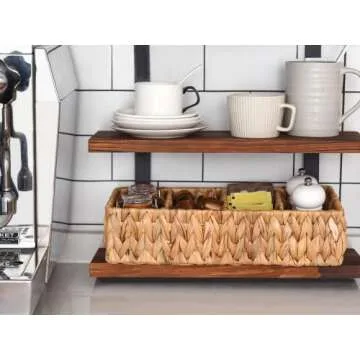 StorageWorks Small Baskets for Organizing, Wicker Baskets for Organizing with 4 Sections, Water Hyacinth Baskets, Handwoven Desk Baskets for Shelves, Pantry, Coffee Bar, 2 Pack