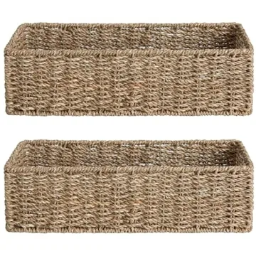 Show moreYour bathroom just got a stylish upgrade! Meet the StorageWorks Toilet Paper Basket, a chic and practical solution for organizing your space while adding a touch of natural beauty. Crafted from sustainable seagrass, this handwoven basket is not only environmentally friendly but also highly functional. Sized perfectly to rest atop your toilet tank, it provides an elegant way to keep toilet paper, hand towels, or even personal care items within easy reach. With dimensions of 15 ¾"L x 6 ½"W x 4 ¼"H, these baskets are versatile enough to be used in various settings, from the bathroom to the living room, kitchen, or even your office. Thanks to its durable iron frame within the weave, you can trust that this organizer will maintain its structure and beauty for years to come.