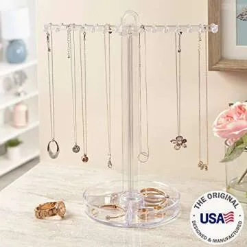 STORi 30 Peg Necklace Holder with Organizer Tray, Premium Quality Jewelry Stand, Store Perfume Bottles & Makeup in the Divided Vanity Tray, Made in USA