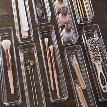 STORi Clear Plastic Drawer Organizers 9" x 2" x 2" l Set of 9