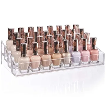 Show moreCrafted in the USA from premium, durable BPA-free clear plastic, our tiered organizer prioritizes both quality and environmental responsibility. By choosing domestically made products, you're reducing carbon emissions from production to delivery compared to products produced overseas. Maximize your countertop space with our multi-tiered stand featuring four compartments, designed to efficiently store various beauty essentials like nail supplies, eyeshadow palettes, and makeup bottles, creating a clutter-free environment. The sleek, elongated design of our organizer fits seamlessly into any space, whether it's your dresser, vanity, craft desk, or closet shelf, bringing organization and sophistication to your surroundings. Perfect for organizing sunglasses, acrylic paint, and serum bottles! This tiered holder accommodates up to 40 nail polish bottles while offering a clear view of your makeup essentials, enhancing both functionality and aesthetics in your daily routine. Ready to use out of the box with no assembly required. With dimensions of 12.25" W x 6.13" L x 3.13" H, this organizer offers ample storage space while maintaining a sleek and compact profile. The ideal gift for birthday parties and wedding showers.