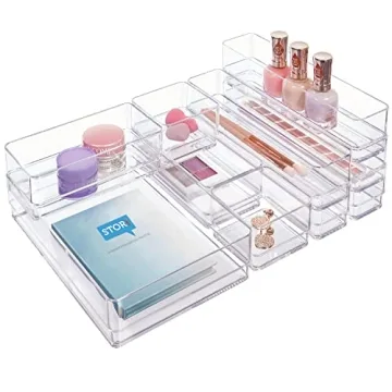 Show moreTransform your cluttered drawers into models of organization with the STORi SimpleSort 10-Piece Stackable Clear Drawer Organizer Set. Made in the USA from high-quality, durable BPA-free clear plastic, these organizers not only help you keep your space tidy but also contribute to a healthier planet by reducing carbon emissions associated with overseas production. The set includes a variety of sizes to fit any drawer, making it perfect for organizing makeup, office supplies, jewelry, and more. The clear acrylic design allows for easy visibility, so you can find what you need without rummaging. Plus, the stackable feature means you can customize your storage to fit both shallow and deep drawers, making it a versatile solution for any room in your home.