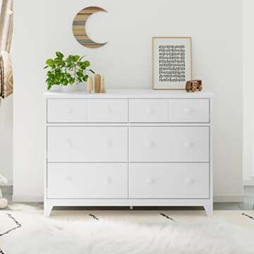 Storkcraft Moss 6 Drawer Dresser – Modern Farmhouse Style (White)