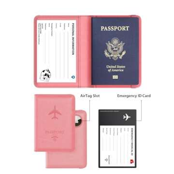 Stouchi Passport Holder with Airtag, Cute Passport Wallet for Women Travel, Leather Passport Holder Family Case, Anti-Lost, Pink