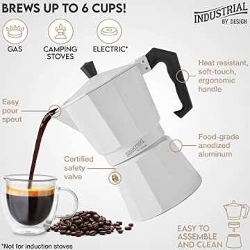Experience the rich, bold taste of freshly brewed espresso like never before with our Stovetop Espresso Maker, a perfect blend of classic design and modern functionality. Crafted for coffee enthusiasts, this Italian coffee maker excels in delivering a robust, flavorful cup of espresso in the comfort of your home or while camping. With a charming white finish, it not only brews great coffee but also adds an elegant touch to your kitchen or coffee corner. Its 6-cup capacity...