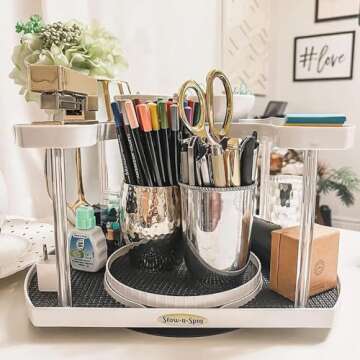 Stow-n-Spin Spice Spinner - Kitchen Organizers and Storage Spice Rack, Seasoning & Spinning Organizer 2-Tier Lazy Susan Design, Holds 40 Spice Jars with Double Spinner on Bottom Spice Shelf (Deluxe)