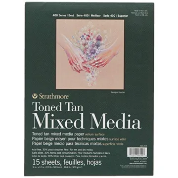 When compared to other brands' mixed media papers, Strathmore stands out due to its heavyweight nature and the unique tan tone. Many competitors offer lighter options, which are not always suitable for extensive layering or wet techniques. The thickness of this paper allows it to withstand water without warping, unlike thinner papers. Additionally, the easy-tear feature is a user-friendly aspect that many others fail to incorporate.