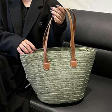 Elegant Straw Beach Women Tote Bag - Lightweight Rattan Woven Bag