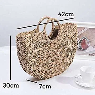Straw Crossbody Bag, Women Beach Shoulder Summer Top Handle Crossbody Round Purse Ladies Woven Fashion Crochet (Beige)
