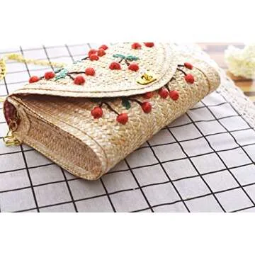 Show moreIntroducing the Straw Crossbody Bag for Women, a chic and versatile accessory that seamlessly blends style and functionality. Crafted from high-quality rattan grass with a soft polyester lining, this beige cherry purse is perfect for summer outings and beach days. Its compact size of 11.4 inches in length, 6 inches in width, and 2.4 inches in depth makes it an ideal choice for carrying just the essentials. Weighing only 0.66 lbs, it won't weigh you down while you enjoy your day in the sun. This bag features a 43.3-inch adjustable shoulder strap, allowing you to wear it comfortably as a shoulder bag or a crossbody bag. Whether you're hitting the beach or running errands, this bag adds a trendy flair to any outfit while providing hands-free convenience.