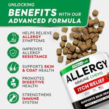 StrellaLab Dog Allergy Relief & Anti Itch Support Chews w/Omega 3: Real Ingredients, Real Taste! Skin & Coat Immune Supplement w/Fish Oil, Pumpkin & Enzymes — Developed by Experts - Made in USA -120Ct