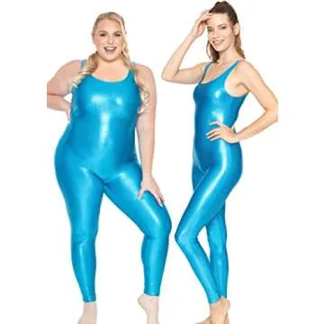 The unique mystique finish adds a touch of sparkle and fun, making it an excellent choice for themed events, parties, or simply as a vibrant addition to your wardrobe. Available in a range of sizes, this unitard accommodates various body shapes, and its stretchy quality allows for room to grow, ensuring you'll enjoy both comfort and longevity with your purchase. The spaghetti strap design offers a polished look while providing ample support, making it easy to style with other clothing pieces.