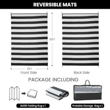 STRICKLANDHOME Outdoor Rug 8 x 10 ft, Reversible Plastic Straw Rug for Patio, Waterproof Large Outdoor Carpet for RV, Patio, Camping, Backyard, Deck, Picnic, Beach, Black & White