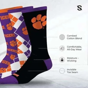 Strideline NCAA Mens Dress Socks- The Executive 3 Pack-Clemson Tigers-Size M/L (8-12)