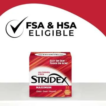 Stridex Medicated Acne Pads, Maximum, 55 Count – Facial Cleansing Wipes, Alcohol Free, Acne Treatment for Face, For Moderate Acne, Smooth Application