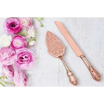 Strova Rose Gold Wedding Cake Server Set – Vintage Cake Cutting Knife and Server for Event Use