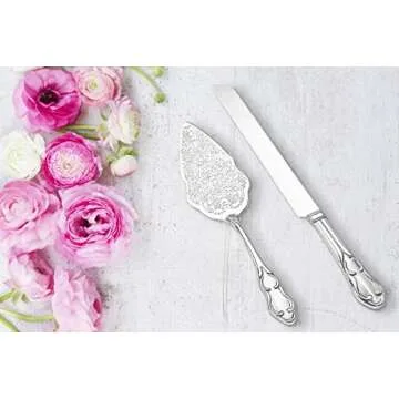 Strova Silver Wedding Cake Serving Set - Elegant Cake Cutting Knife and Server for Event Use