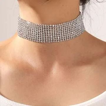 Sttiafay Punk Rhinestone Choker Necklace for Women Wide Full Diamond Necklace Chain 10-Row Sparkly Crystal Choker Collar Sexy Nightclub Party Prom Accessories