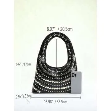 Studded Purses for Women Vegan Leather Hobo Bag Y2K Purse 2025 Spring Tote Bag Stud Crescent Shoulder Handbag