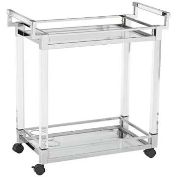 The Studio 55D Rossi Bar Cart features a clear acrylic construction with chrome finish accents, providing an elegant and contemporary look.