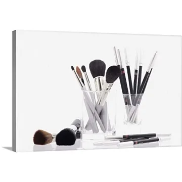 In comparison to other wall art offerings, the **Studio Shot of Makeup and Makeup Brushes Canvas Wall Art Print** stands out due to its specialized focus on makeup aesthetics. While many general art prints dilute their essence across various themes, this canvas embodies the vibrant world of beauty products like no other, attracting attention in the crowded wall art market. Its unique representation of makeup essentials coupled with professional-quality imagery positions it as superior to generic floral prints or abstract art.