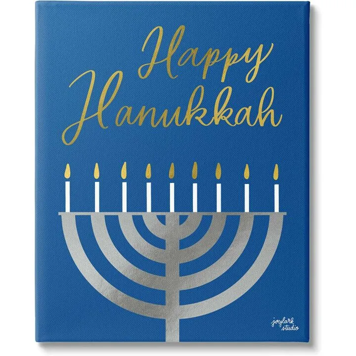 \n\nThis beautiful Hanukkah wall art brings joy and surprise to any recipient. Its festive design and high-quality make it both an emotional and aesthetic addition to any home. From its bright and cheerful imagery to its elegant calligraphy, it captures the heart and spirit of Hanukkah, making it an endearing gift that will be cherished for years to come.