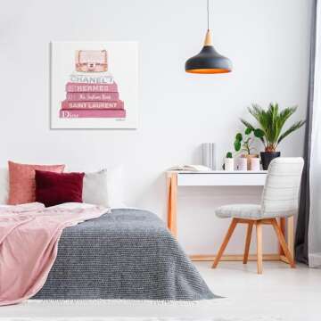 Show moreIntroducing the Stupell Industries Pink Book Stack Fashion Handbag Canvas Wall Art—a stunning piece of home décor that perfectly marries elegance and artistic flair. Showcasing a vibrant design created by the talented Amanda Greenwood, this canvas artwork measures 30 x 30 inches and features a chic stack of pink books juxtaposed with a fashionable handbag, making it a must-have accent for every style-savvy individual. Proudly made in the USA, each piece is carefully hand stretched over a sturdy 1.5-inch thick wood frame, ensuring durability and an easy-to-hang solution for your wall. Perfect for adding a delightful pop of color and sophistication to any room, this canvas wall art is your key to transforming spaces into chic retreats.