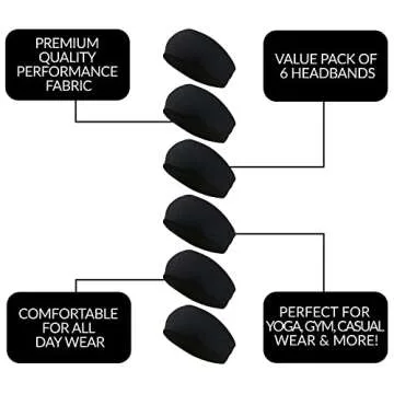 Styla Hair Solid Headband for All Hair Types – 6 Pack Wide Headbands for Women in Soft Stretch Fabric for All Day Wear – Trendy & Stylish Headbands for Women's Hair (Black)