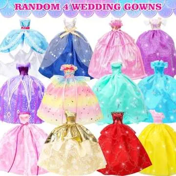 Show moreDiscover the magic of fashion with our Style Shine 50 Pack Doll Clothes and Accessories, designed to awaken the inner stylist in every child and adult alike. This exquisite collection showcases a delightful array of outfits, including 4 wedding gowns, 2 evening dresses, 6 casual outfits, and 2 stylish swimsuits. With a total of 50 pieces, this set promises endless fun and creativity, allowing little ones to mix and match different looks for their beloved Barbie dolls. Each outfit has been meticulously crafted by our talented fashion designer team, ensuring that your doll can strut her stuff in the latest trends.