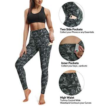 STYLEWORD Women's Camo Pattern Print Yoga Pants High Waist Full-Length Leggings with Pocket(Beehive Camo-084F,S)