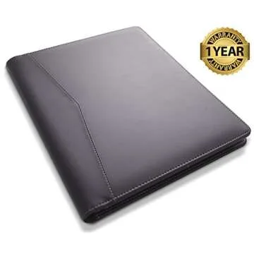 STYLIO Padfolio Portfolio Organizer Binder | Interview Resume Folder, Legal Document, Business Card Holder |w/Letter-Sized Notepad | Handsome Piano Noir Faux Leather Folio Matte Finish, Accent Stitch