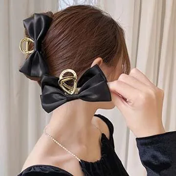 Stylish Black Satin Bow Hair Clip for Women | Large and Versatile | Secure Hold for Daily Wear