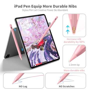 Stylus Pen for iPad,4X Fast Charge,10 Hour Use,Low Latency,Compatible Work for 2018-2024 iPad Air 11/13-inch(M2) Air/3/4/5/6,iPad Mini 5/6,iPad 6/7/8/9/10,iPad Pro 11/13-inch(M4),Pro 11"/12.9"(Pink)