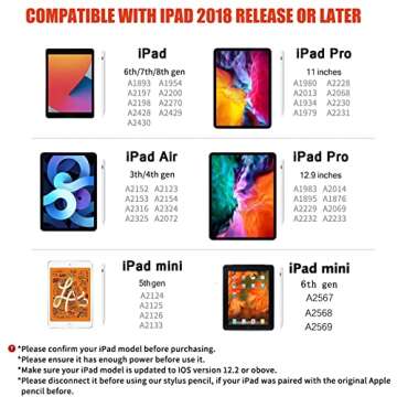 Stylus Pen for iPad with Palm Rejection, Bluetooth Active iPad Pencil Compatible with Apple iPad Pro 12.9/11, iPad 9/8/7/6 Gen, Mini 6/5, Air 5/4/3 Apple Pen with Battery Level Display